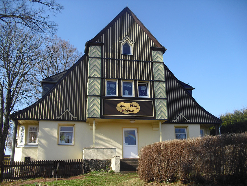 Unser Außengelände ist naturnah gestaltet und bietet zahlreiche Spiel- und Bewegungsmöglichkeiten – von Klettergerüst, Balancierstrecke und Bewegungsbaustelle bis hin zu Weidentipis als Rückzugsorte. Die Spielgeräte fügen sich harmonisch in die Hanglage ein und bestehen überwiegend aus Holz. Besonders beliebt sind unser großer Sommerpool und die einrichtungseigene Fass-Sauna, die regelmäßig für Wellness-Tage genutzt wird. Auch eine Kräuterschnecke, ein Hochbeet, ein Kompost mit Sichtfenster und eine Klangstrecke bereichern das Gelände. Die Pflege erfolgt gemeinsam mit Kindern, Eltern und unserem Hausmeister. Beerensträucher und Obstbäume laden zum Naschen ein und machen Natur hautnah erlebbar. So wird unser Außengelände täglich zum Lern- und Erlebnisraum für alle Altersgruppen.